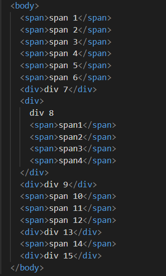 그리고 div8의 자식들 중 첫번째인 span1이 분홍색, 마지막인 span4가 빨간색이됐다.