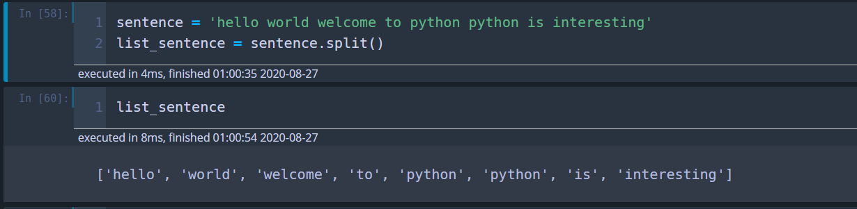 [ split() ] : sentence에 든 문자열을 구분자를 기준으로 나누어 리스트형태로 저장한다.